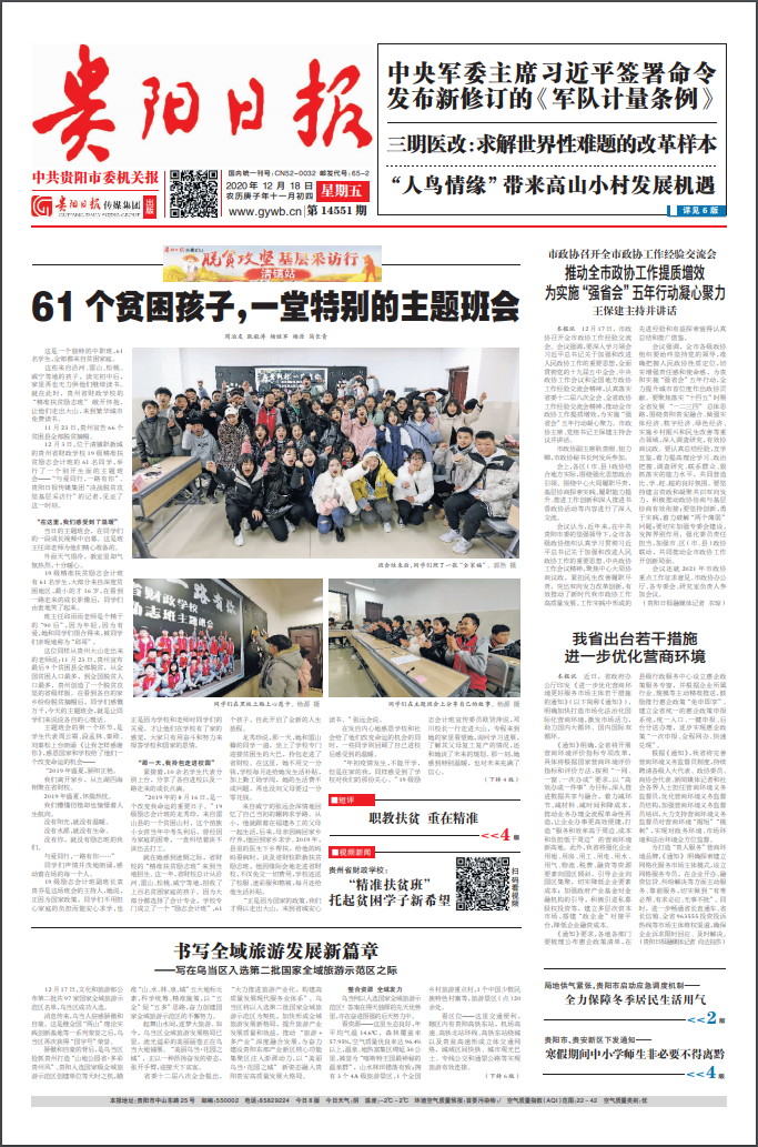 《貴陽日?qǐng)?bào)》在擁有300萬人口的貴陽市享有盛譽(yù)和權(quán)威,是市民喜愛的一張報(bào)紙,被省內(nèi)外客戶視為發(fā)布廣告之理想陣地。