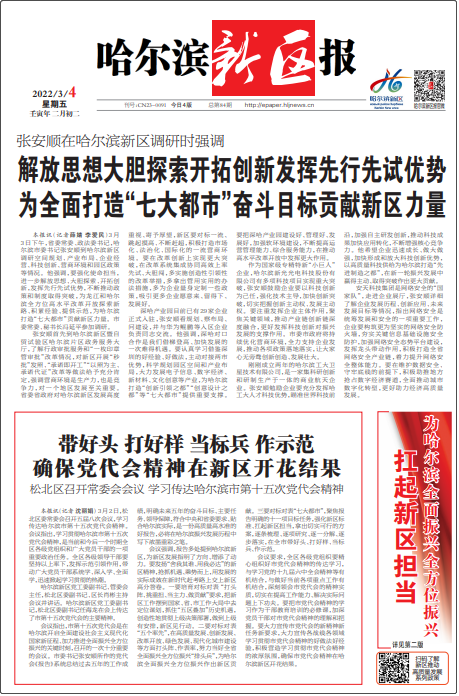 《哈爾濱新區(qū)報》將立足新區(qū)之“新”,緊扣新區(qū)中俄全面合作重要承載區(qū)、東北地區(qū)新的經(jīng)濟增長極、老工業(yè)基地轉型發(fā)展示范區(qū)和特色國際文化旅游聚集區(qū)的“三區(qū)一極”的發(fā)展定位,進一步發(fā)揮新區(qū)在全市全省的引領作用,致力于反映新區(qū)經(jīng)濟發(fā)展、社會進步、營商環(huán)境、對外開放等方面的新探索、新成效和新經(jīng)驗,從新引擎、新創(chuàng)造、新產(chǎn)業(yè)、新城市、新生活、新風貌等多個角度見證新區(qū)的成長和發(fā)展,感受新區(qū)律動的脈搏,發(fā)出主流媒體的最強音,傳遞好新區(qū)聲音,講好新區(qū)故事。