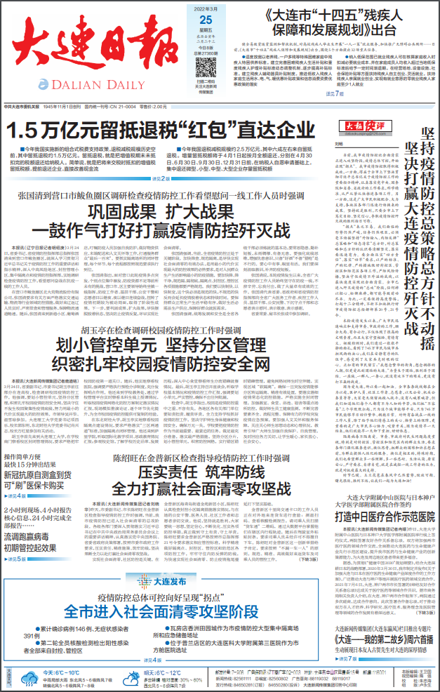 《大連日?qǐng)?bào)》是1945年11月1日創(chuàng)刊的大連市委機(jī)關(guān)報(bào),是以社會(huì)政治經(jīng)濟(jì)報(bào)道為主的大型綜合性日?qǐng)?bào),日均發(fā)行量20萬(wàn)份,1份《大連日?qǐng)?bào)》約有7—9人在傳閱,每天的直接和間接受眾高達(dá)140萬(wàn)—180萬(wàn)人次。覆蓋大連市各縣市區(qū)、省內(nèi)及全國(guó)主要城市。