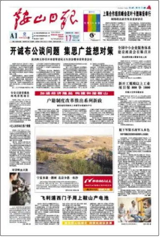 《鞍山日?qǐng)?bào)》創(chuàng)刊于1949年2月7日,是中共遼寧省鞍山市委機(jī)關(guān)報(bào)紙,面向全市發(fā)行。