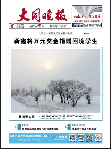 《大同晚報》在繼續(xù)關(guān)注民生的同時,加強(qiáng)作為新聞和輿論陣地的監(jiān)督作用,懲惡揚(yáng)善,促進(jìn)社會公平、公正和正義,促進(jìn)建設(shè)健康和諧社會。