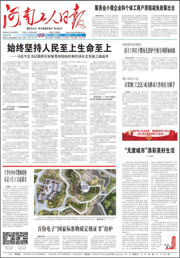 《河南工人日?qǐng)?bào)》是服務(wù)于新時(shí)期河南改革開放和現(xiàn)代化建設(shè),服務(wù)于河南工運(yùn)事業(yè)和全省廣大勞動(dòng)者的需要而誕生的,融政治、經(jīng)濟(jì)、文化、社會(huì)生活于一體的綜合大報(bào),長期以來,《河南工人日?qǐng)?bào)》堅(jiān)持高舉旗幟、突出維護(hù)、服務(wù)大局、辦出特色的原則,牢記全心全意依靠工人階級(jí),維護(hù)勞動(dòng)者的合法權(quán)益,為企業(yè)服務(wù)、為職工撐腰、與時(shí)代同行的辦報(bào)宗旨,贏得了廣大職工群眾和廣大讀者的肯定和稱贊。