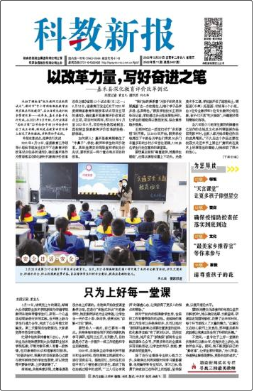 《科教新報(bào)》作為面向教育的專(zhuān)業(yè)報(bào),立足湖湘大地,瞭望教育先聲,為全省教育行政部門(mén)提供決策參考;為全省廣大師生提供精神生活服務(wù),用精品力作,講好教育好故事;用經(jīng)典資訊,做好千千萬(wàn)萬(wàn)個(gè)家庭的“教育通”。目前開(kāi)辟了《要聞》《綜合》《師說(shuō)》《連線》《校園》《文化》《課堂》《樂(lè)游》《科技》《留學(xué)》《成長(zhǎng)》《法制》《家教》《廣角》等板塊,內(nèi)容涵蓋教育領(lǐng)域的各個(gè)方面,將視角伸向社會(huì),關(guān)注教育與社會(huì)的熱點(diǎn)、難點(diǎn)和疑點(diǎn)問(wèn)題,實(shí)現(xiàn)學(xué)校教育與社會(huì)、家庭的互動(dòng),積極發(fā)揮“散熱解難”的作用。