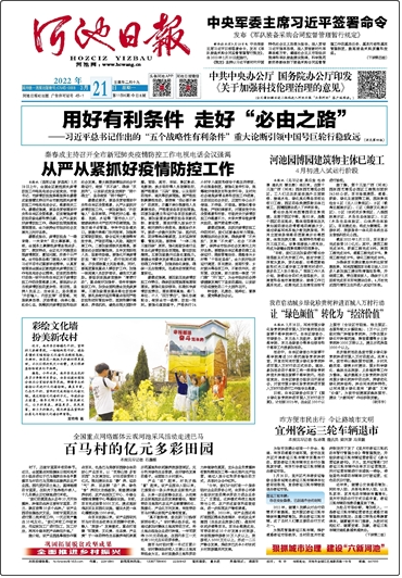 河池日報在市委市政府的領(lǐng)導下,堅持以鄧小平理論、“三個代表”重要思想和科學發(fā)展觀為指導,堅持“黨之喉舌,民之心聲”的辦報宗旨,堅持正確輿論導向和“三貼近”原則,突出報道河池市改革開放和經(jīng)濟社會發(fā)展的動態(tài)和消息,全方位報道國內(nèi)外最新信息,盡職盡責為建設富裕文明和諧新河池服務。