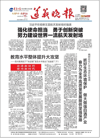 《遵義晚報(bào)》創(chuàng)刊于1985年,四開(kāi)二十四版,全國(guó)發(fā)行。是一張集知識(shí)性、趣味性、可讀性為一體,最受都市百姓喜愛(ài)的地方性城市晚報(bào)。