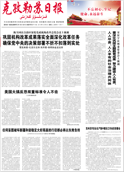 《克孜勒蘇日報》創(chuàng)刊于1957年,是克州黨委機關報,出版漢語、維吾爾語、柯爾克孜語三種文版的報紙。在單位漢族、維吾爾族、柯爾克孜族同事們的共同努力下,三種語言的報紙同步編印發(fā)行,全州各民族同胞同時能從報紙上了解到黨和政府的各項惠民政策。多年來,克孜勒蘇日報的受眾遍布全州各族群眾。這些都印證了中國政府歷來依法保障各民族使用和發(fā)展本民族語言文字的權利。