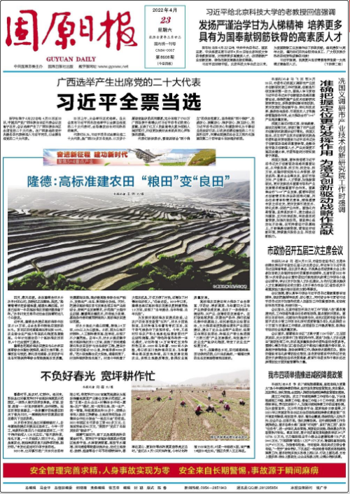 《固原日報(bào)》是固原唯一一份全國公開發(fā)行的報(bào)紙,國內(nèi)統(tǒng)一刊號:CN64-0007 ,國內(nèi)郵發(fā)代號:73-7 ,報(bào)社地址:中國寧夏固原中心路49號 發(fā)行方式:自辦發(fā)行。