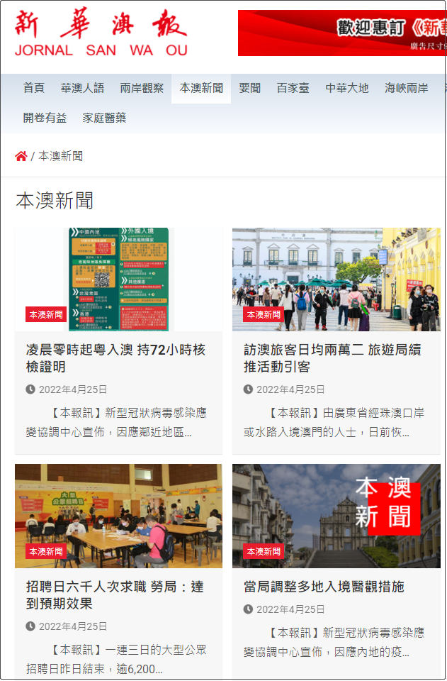 《新華澳報》是中國澳門一家私營中文報紙。前身為1989年12月20日創(chuàng)刊的中文周報《華澳郵報》,起初每周星期三出版。1994年12月20日改為日報《華澳日報》,改為日報后每日出紙一張半,1995年7月改為一大張〔逢周日休息〕。2000年4月3日再名為《新華澳報》。