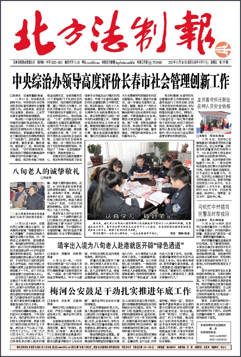北方法制報(bào) 《北方法制報(bào)》是吉林日報(bào)報(bào)業(yè)集團(tuán)子報(bào)之一,是吉林省惟一公開出版發(fā)行的法制類專業(yè)報(bào),面向全國發(fā)行。《北方法制報(bào)》以堅(jiān)持宣傳依法治國方略,維護(hù)國家法律尊嚴(yán),普及群眾法律知識(shí),強(qiáng)化社會(huì)輿論監(jiān)督,服務(wù)社會(huì)各界讀者為宗旨,立足政法,面向社會(huì),關(guān)注焦點(diǎn),宣傳法制,弘揚(yáng)正氣,鞭撻丑惡,開闊視野,警策人生。