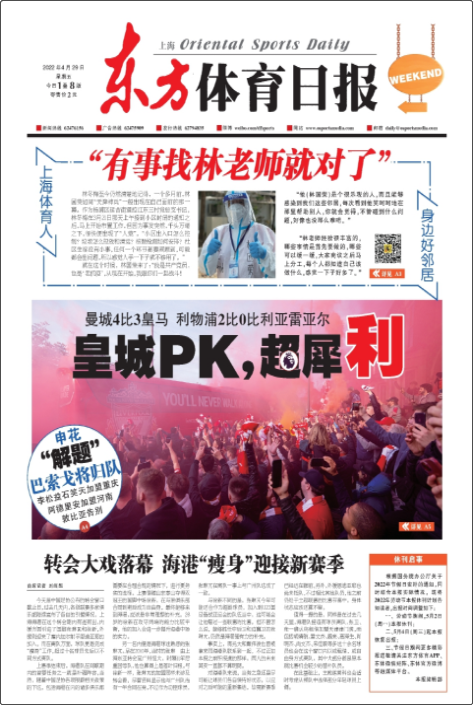 《東方體育日報》是中國大眾化媒體中唯一的綜合性體育類日報,報紙以上海為中心,覆蓋了長三角及華東地區(qū),是囊括競技體育和群眾體育,為讀者提供及時、全面深入的體育資訊的綜合性體育報紙。