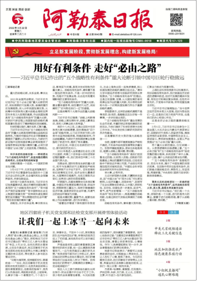《阿勒泰日?qǐng)?bào)》是阿勒泰地委機(jī)關(guān)報(bào)紙,由中共阿勒泰地區(qū)委員會(huì)主辦。前身是隸屬于阿山專區(qū)的機(jī)關(guān)報(bào),解放后改編為阿勒泰地委機(jī)關(guān)報(bào)!栋⒗仗┤?qǐng)?bào)》分為漢、哈兩種文字,《阿勒泰日?qǐng)?bào)》(哈文版)創(chuàng)辦于1935年12月27日,《阿勒泰日?qǐng)?bào)》(漢文版)創(chuàng)刊于1965年!栋⒗仗┤?qǐng)?bào)》已經(jīng)成為“讓世界了解阿勒泰,讓阿勒泰走向世界”的窗口。