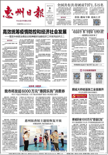 宣傳黨的大政方針,配合市委、市政府的中心工作為己任,牢牢把握正確的輿論導(dǎo)向,是惠州地區(qū)發(fā)行量最大、覆蓋面最廣、最具權(quán)威的報紙。