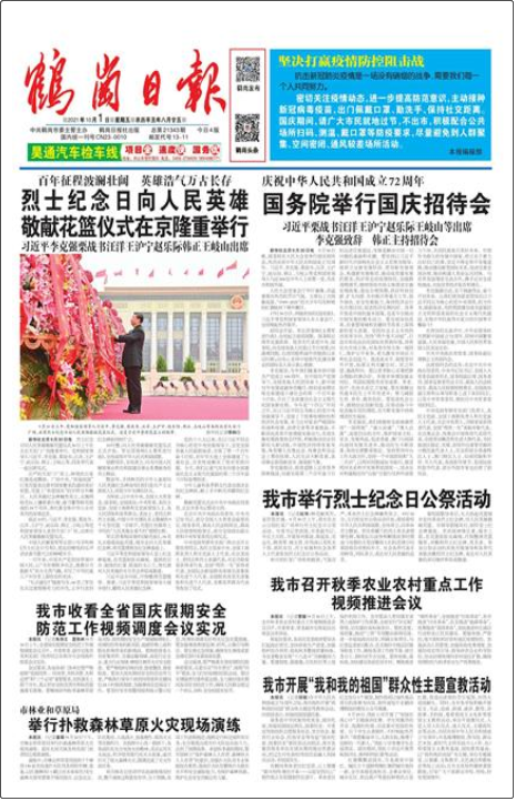 《鶴崗日報》為中共鶴崗市委機關報,是全市百萬人民了解本地政治、經(jīng)濟及國內(nèi)外各方信息的一個重要媒介,是向人們展示、介紹傳遞信息的一個重要媒體。1947年1月1日正式創(chuàng)刊。《鶴崗日報》與黨同心同德,與讀者風雨同舟,熱情謳歌鶴崗改革開放和現(xiàn)代化建設的偉大成就,忠實記錄鶴崗日新月異的發(fā)展變化,真誠表達鶴崗普通民眾的心聲和意愿,為人民利益鼓與呼。作為省內(nèi)創(chuàng)立最早的地市級黨報之一,《鶴崗日報》從無到有,從小到大,從弱到強,從創(chuàng)刊之初的一份八開二版不定期出刊的小報,發(fā)展到現(xiàn)在擁有兩報(《鶴崗日報》、《鶴崗晚報》)、四刊(《生活周刊》、《攝影?贰ⅰ段闯赡耆说掠芸、《安全周刊》)和一通訊(《鶴崗日報通訊》)的規(guī)模;報紙印刷實現(xiàn)了從鉛字排版到激光照排的跨越;報紙顏色實現(xiàn)了從黑白到套紅彩色的跨越;報紙服務信息實現(xiàn)了從單一到多層面的跨越;辦公形式實現(xiàn)了從紙和筆到無紙化辦公的跨越;辦公條件設備實現(xiàn)了與時俱進,從落后到與全國報業(yè)同步前進的跨越。