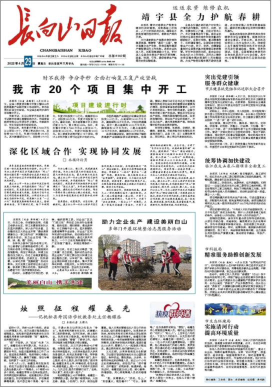 長白山日報》為中共白山市委機關(guān)報,對開八版,是吉林省白山市第一報。立足白山,面向東北,據(jù)有內(nèi)容豐富、形式活潑、貼近生活等特點,集思想性、知識性、趣味性于一體,深受廣大讀者喜愛。
