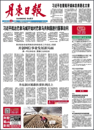 《丹東日報》是丹東市委機關(guān)報,創(chuàng)刊60余年,對開八版,全國發(fā)行。信息量大,覆蓋全市區(qū)及東港、鳳城、寬甸城鄉(xiāng),受眾面廣,傳閱率高,廣告性價比優(yōu),是本地區(qū)最具權(quán)威性和公信力的綜合性媒體。