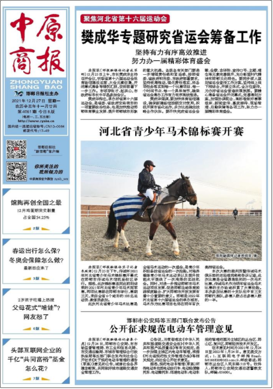 《中原商報》以“傳遞商情、服務(wù)百業(yè)、展示財富、導(dǎo)航生活”為辦報宗旨,反映經(jīng)濟生活,契合百姓需求,展現(xiàn)市場風(fēng)云。它立足邯鄲,輻射中原,以邯鄲為主發(fā)行區(qū)域,全國20多個省市有通過郵局的訂閱。