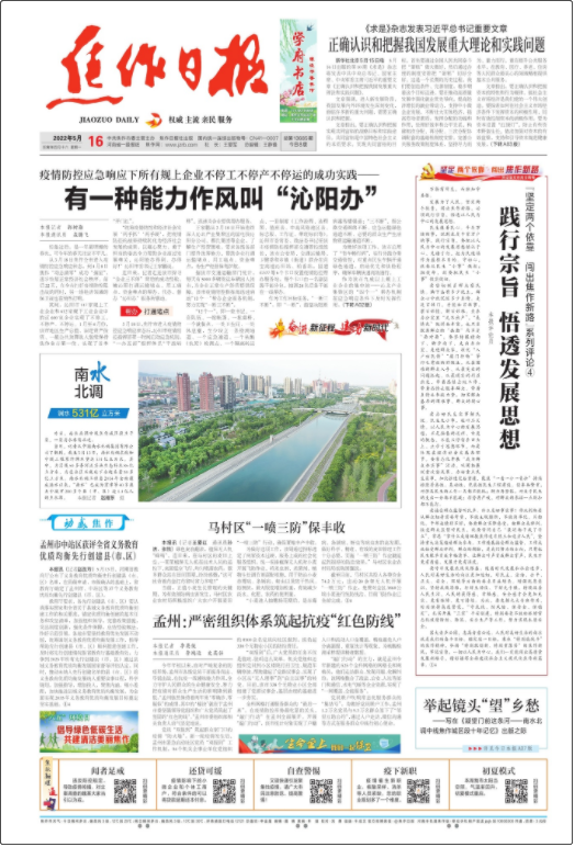 《焦作日報》系中共河南省焦作市委機(jī)關(guān)報,創(chuàng)刊于1957年7月,1961年因國家經(jīng)濟(jì)困難而?1983年5月1日復(fù)刊,F(xiàn)為對開日報,每周出報22張共88個版,期發(fā)行量為7.5萬份,人均發(fā)行量居河南省地市報前茅。 焦作日報社現(xiàn)有正式工作人員140余人,平均年齡32歲。在110余名采編人員中,具有正高級專業(yè)技術(shù)職稱的4人,副高級技術(shù)職稱26人,中級技術(shù)職稱67人。除出版焦作日報外,還在鄭州出版《百姓視點》周報,并在全國地市報中首批出版電子版,加入國際互聯(lián)網(wǎng),建立了焦作新聞網(wǎng),在世界各地均可看到焦作新聞。
