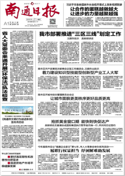 《南通日?qǐng)?bào)》弘揚(yáng)主旋律,宣傳大政方針,聚集社會(huì)熱點(diǎn),關(guān)注民情民生,服務(wù)千家萬(wàn)戶(hù),信息量大,可讀性強(qiáng),版式新穎,內(nèi)容多樣,涵蓋社會(huì)生活的方方面面,深受讀者信任和支持,是南通地區(qū)影響力最大,權(quán)威性最強(qiáng),讀者閱讀率和忠誠(chéng)度最高的報(bào)紙。