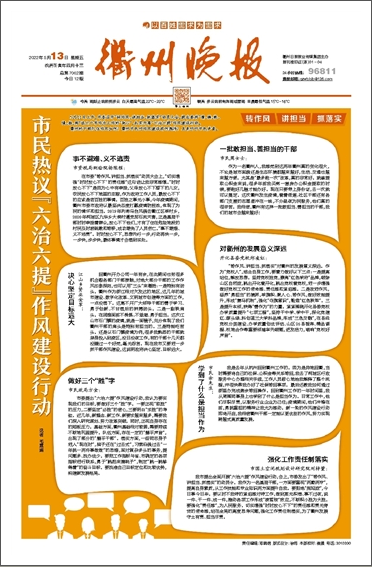 《衢州晚報(bào)》的辦報(bào)宗旨是“以百姓需求為需求”,在新聞選擇上更重新聞價(jià)值,稿子更短更活,版面信息容量更大,內(nèi)容更貼近大眾,具有更強(qiáng)的可讀性,深受廣大讀者的好評(píng)。