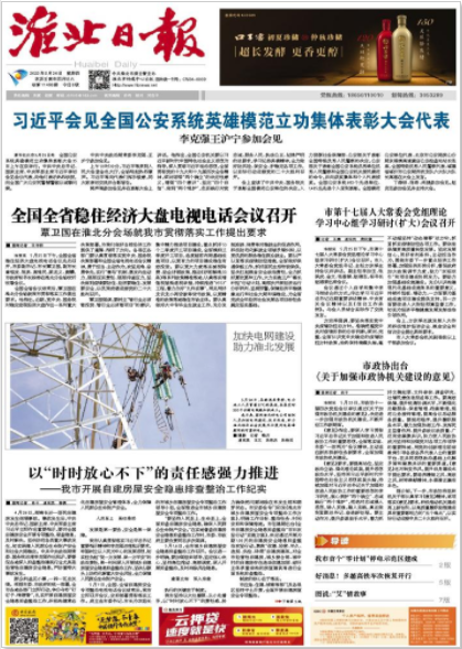 《淮北日?qǐng)?bào)》是中共淮北市委機(jī)關(guān)報(bào),創(chuàng)刊于1971年5月1日,現(xiàn)為對(duì)開8版。