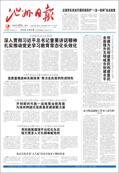 《池州日?qǐng)?bào)》,1969年1月1日創(chuàng)刊,是中共池州市委機(jī)關(guān)報(bào),在全省市級(jí)黨報(bào)中是出報(bào)較多的一張報(bào)紙!冻刂萑?qǐng)?bào)》是中共池州市委機(jī)關(guān)報(bào),創(chuàng)刊于1969年1月1日,現(xiàn)為對(duì)開(kāi)四版彩色大報(bào),每周出版十一張報(bào)紙,其中,星期一至星期五為正報(bào),星期六為周末刊《九華周刊》,星期日為《財(cái)經(jīng)周刊》,周三為《教育周刊》,每周三還出版《池州日?qǐng)?bào)·貴池新聞》,周二出版《池州日?qǐng)?bào)·東至新聞》,周四出版《池州日?qǐng)?bào)·青陽(yáng)新聞》,在全省市級(jí)黨報(bào)中是出報(bào)較多的一張報(bào)紙。