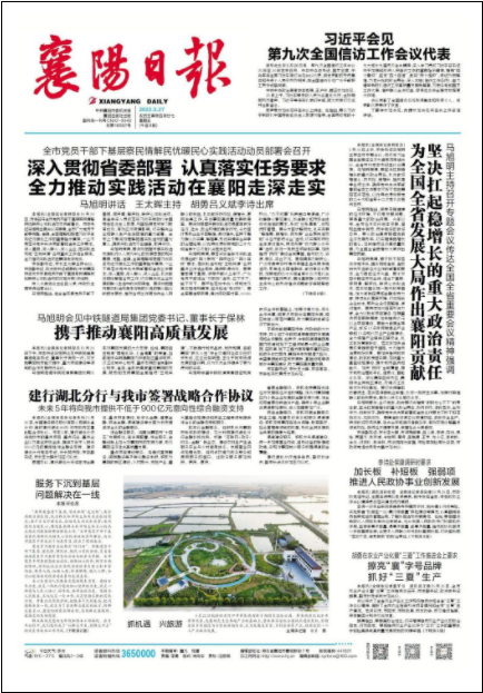 2019年3月21日,《襄陽日報》獲得由人民日報全國黨媒信息公共平臺與中國平安聯(lián)合發(fā)起的“村暖花開·鄉(xiāng)村扶貧扶志典型人物”評選活動“全國黨媒優(yōu)秀扶貧報道”獎項。