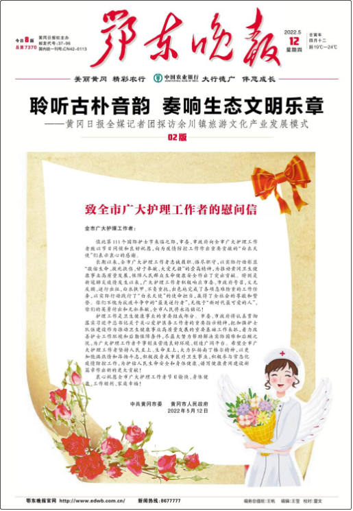 《鄂東晚報》創(chuàng)刊于1996年之春,四開16版彩色印刷,擁有一支政治和業(yè)務素質較強的新聞隊伍,已成為具有時代特征、地方特色和晚報特點的地方強勢媒體。