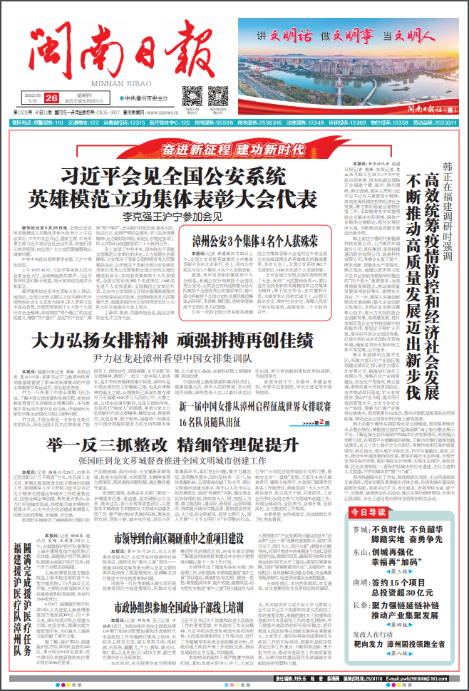 《閩南日?qǐng)?bào)》系福建省中共漳州市委機(jī)關(guān)報(bào),為對(duì)開(kāi)8版的日?qǐng)?bào)。