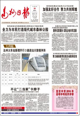 《達州日報》創(chuàng)刊多年來,高揚時代旗幟,推動社會進步,是達州各級黨政機關、企事業(yè)單位,文化教育部門,基層黨組織及廣大人民群眾學習,了解黨的路線、方針、政策的主流媒體,并已成為川東北地區(qū)新聞、政治、經(jīng)濟、文化、信息、傳播中心。