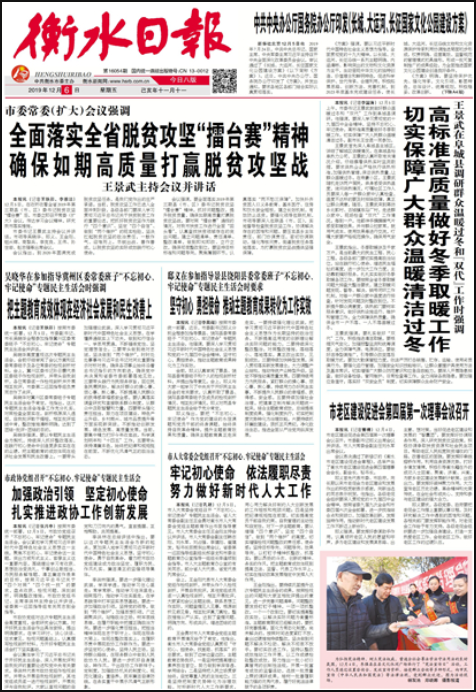 《衡水日報》為中共衡水市委機關(guān)報,創(chuàng)刊于1962年,是衡水市委機關(guān)報,是衡水市最具權(quán)威性的新聞媒體。覆蓋衡水市兩區(qū)一市八縣,并輻射鄰近省市。
