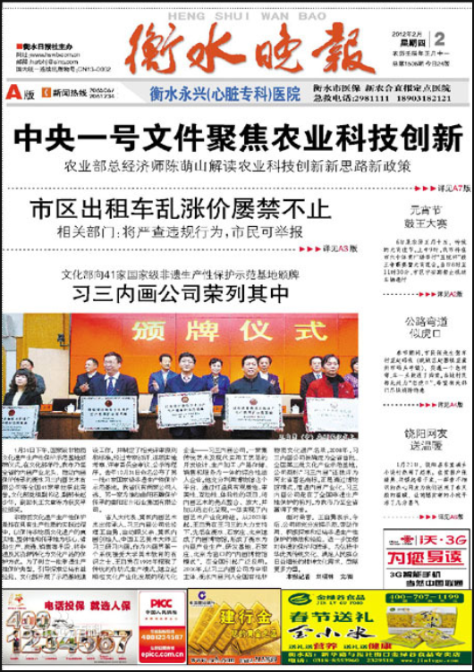 衡水晚報日發(fā)行量9萬份,四開二十四版,周六刊。衡水晚報用敏銳、獨特的視角,捕捉時尚流行趨勢,采集使用消費資訊,努力倡導健康時尚的生活理念和消費方式,以貼近生活、投身市場為讀者提供豐富多彩的內(nèi)容,受到讀者的廣泛歡迎,因此,衡水晚報為衡水市最大的面向都市時尚人群和主流消費群體的時尚生活服務類報紙。