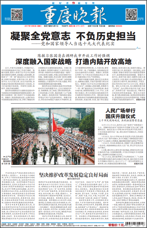重慶晚報創(chuàng)刊于1985年5月,現(xiàn)隸屬于重慶日報報業(yè)集團,每日彩印,刊例使用世界平媒盛行的瘦身版式,發(fā)行量超越40萬份,是重慶區(qū)域發(fā)行量最大、廣告收入最高的報紙并繼續(xù)多年堅持"雙搶先"位置。以較大優(yōu)勢領(lǐng)軍于重慶報業(yè)傳媒,其發(fā)行量、影響力、均勻閱覽率名列前茅。新聞版面重視世界國內(nèi)嚴重時政新聞,地方新聞則一向堅持接近市民、關(guān)懷市民、積極為市民排憂解難的特征。重慶晚報選用世界盛行對開減肥版,氣勢大,容量大,2004年擴大到24版以上,大幅添加《投訴查詢》、《目睹新聞》等與市民關(guān)系密切的地方新聞。實施郵發(fā)、自辦發(fā)行并重的雙軌發(fā)行政策。
