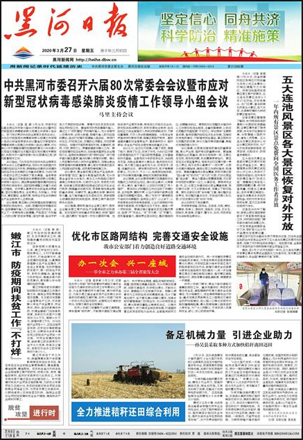 《黑河日?qǐng)?bào)》是中共黑河市委機(jī)關(guān)報(bào),創(chuàng)刊于1946年8月1日,是全國(guó)創(chuàng)刊最早的地市級(jí)黨報(bào)之一。