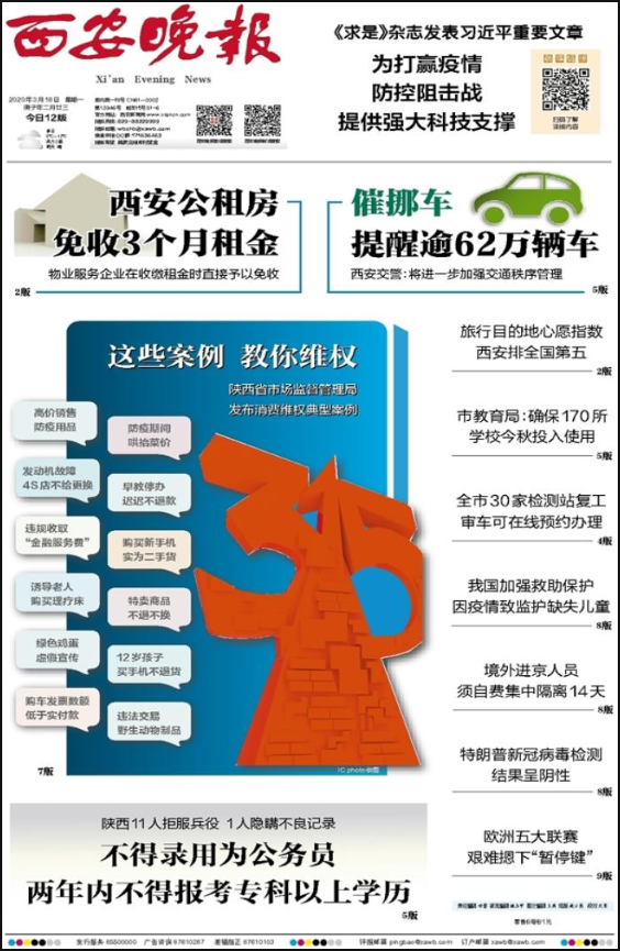 《西安晚報》以其出色快捷的新聞,豐富多彩的信息,勸慰準確的觀點,新穎獨特的視角,貼近百姓,關(guān)注民生,擁有巨大的社會影響力和公信力。“以個性的方式傳播新聞,為明確的受眾提供資訊,靠新銳的態(tài)度引導(dǎo)消費,從經(jīng)濟的角度服務(wù)生活,憑專業(yè)的高度指導(dǎo)創(chuàng)業(yè)”是《西安晚報》的五大辦報方針。“及時生動地反映城市生活,具體周到地服務(wù)城市生活,科學(xué)有效地指導(dǎo)城市生活”是《西安晚報》的辦報宗旨。
