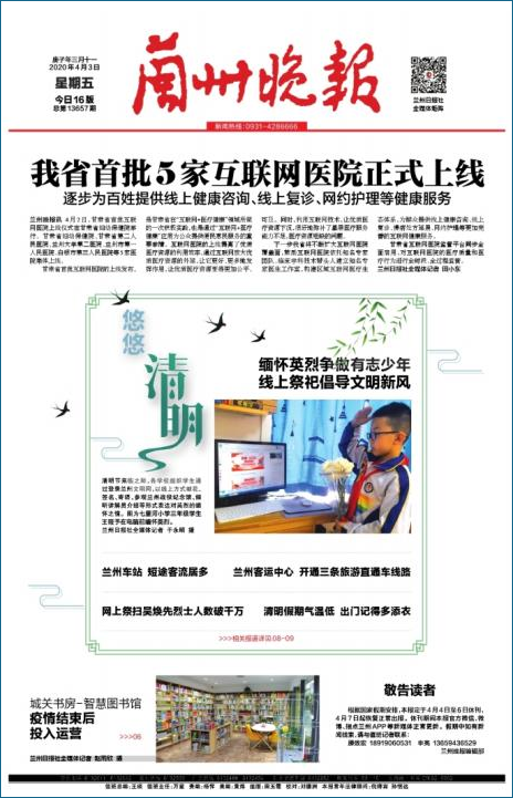 《蘭州晚報》是中共蘭州市委主辦的黨報,創(chuàng)刊于1980年7月1日,原名《蘭州報》。 《蘭州報》創(chuàng)刊初期為四開四版周三刊,是具有晚報特色的機關(guān)報,