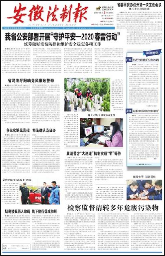 現(xiàn)成為安徽日報報業(yè)集團(tuán)麾下的重要系列報,也是安徽省唯一的法制類報紙,是安徽省委、省政府指導(dǎo)全省民主法制建設(shè)、政法及行政執(zhí)法、社會治安綜合治理工作的重要輿論陣地。