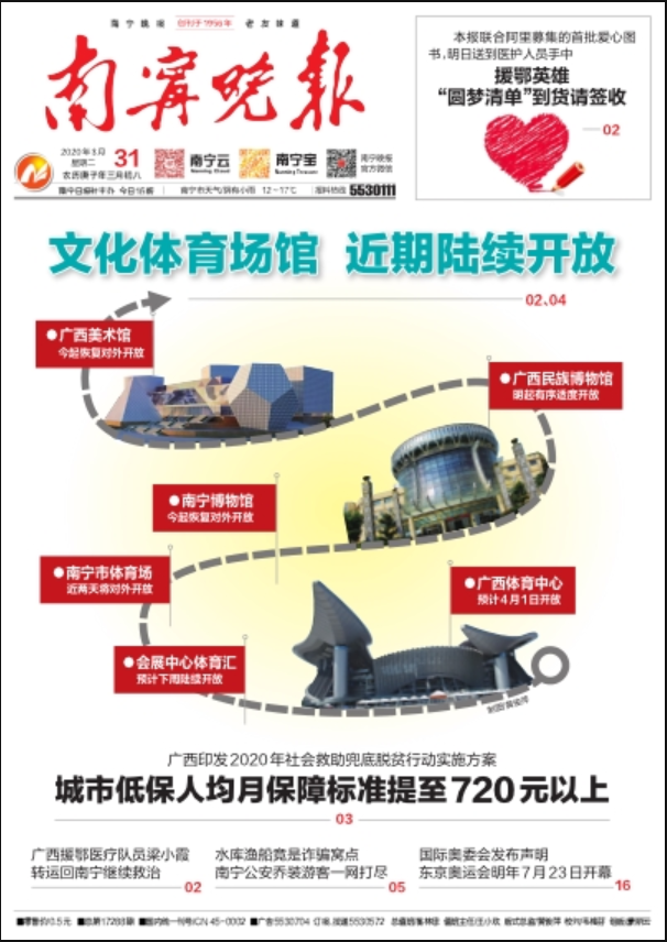 《南寧晚報》為彩色照排、彩色印刷,質(zhì)量上乘,內(nèi)容豐富。 中共南寧市委決定,經(jīng)國家新聞出版總署批準(zhǔn),從2005年1月1日起,中共南寧市委機關(guān)報《南寧日報》公開出版發(fā)行,主管主辦單位為中共南寧市委。2005年1月1日,《南寧晚報》強力改版----與《八桂都市報》整合成為一份全新的主流都市報。新的《南寧晚報》為南寧日報社子報,主管主辦單位為南寧日報社。全新改版的《南寧晚報》采用時尚四開報型;日均40版,貼近生活,貼近市民,信息更豐富,服務(wù)更到位,新聞更精彩。