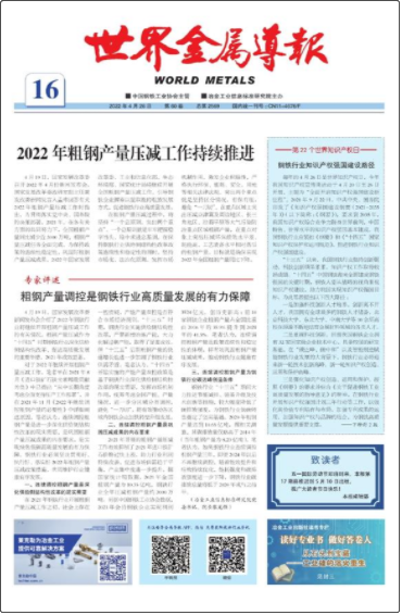 經(jīng)過近50余年發(fā)展,世界金屬導(dǎo)報已是中國發(fā)行量最大、覆蓋范圍最廣、影響力最強的鋼鐵行業(yè)專業(yè)科技媒體。