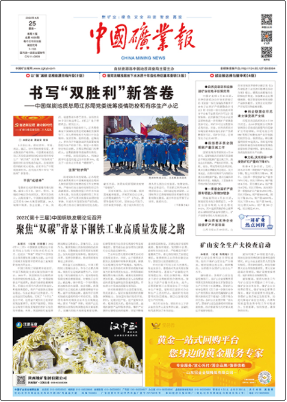 中國(guó)礦業(yè)報(bào)是國(guó)家級(jí)行業(yè)報(bào),由自然資源部中國(guó)地質(zhì)調(diào)查局主管主辦!吨袊(guó)礦業(yè)報(bào)》從1994年創(chuàng)刊,在這十幾年的風(fēng)風(fēng)雨雨中致力于服務(wù)全行業(yè),力爭(zhēng)成為礦業(yè)代言人和喉舌的產(chǎn)業(yè)經(jīng)濟(jì)大報(bào)!吨袊(guó)礦業(yè)報(bào)》充分發(fā)揮新聞媒體的輿論先導(dǎo)作用,為建設(shè)和諧礦業(yè)營(yíng)造良好的輿論氛圍,進(jìn)而為實(shí)現(xiàn)上述目標(biāo)提供可靠的資訊保障,促進(jìn)礦業(yè)的持續(xù)、穩(wěn)定、健康發(fā)展。同時(shí),抓住礦業(yè)發(fā)展的難得機(jī)遇,利用自身的比較優(yōu)勢(shì)和差異化競(jìng)爭(zhēng)優(yōu)勢(shì),進(jìn)一步提升報(bào)紙質(zhì)量,打造報(bào)紙的核心競(jìng)爭(zhēng)力,樹立品牌形象,使《中國(guó)礦業(yè)報(bào)》真正成為礦業(yè)領(lǐng)域不可或缺的主流媒體,創(chuàng)造更佳的社會(huì)效益和經(jīng)濟(jì)效益。