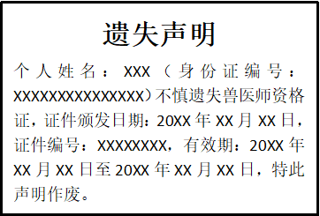 個(gè)人姓名:XXX(身份證編號(hào):XXXXXXXXXXXXXXX)不慎遺失高級(jí)職稱證,證件頒發(fā)日期:20XX年XX月XX日,證件編號(hào):XXXXXXXX,有效期:20XX年XX月XX日至20XX年XX月XX日,特此聲明作廢。