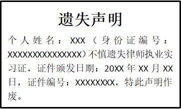 律師執(zhí)業(yè)實習(xí)證遺失聲明