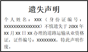 道路運(yùn)輸從業(yè)資格證遺失聲明