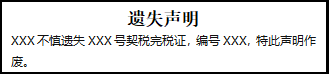 XXX不慎遺失XXX號契稅完稅證,編號XXX,特此聲明作廢。