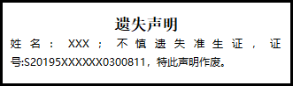 姓名:XXX;不慎遺失準生證,證號:S20195XXXXXX0300811,特此聲明作廢。