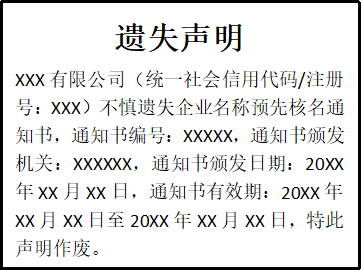 企業(yè)名稱預(yù)先核名通知書遺失聲明
