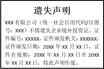XXX機(jī)構(gòu)(統(tǒng)一社會(huì)信用代碼/注冊(cè)號(hào):XXX)不慎遺失對(duì)外貿(mào)易經(jīng)營(yíng)者備案登記表,單據(jù)編號(hào):XXXXX,單據(jù)簽發(fā)機(jī)構(gòu):XXXXXX,單據(jù)簽發(fā)日期:20XX年XX月XX日,特此聲明作廢。