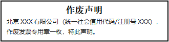 北京XXX有限公司(統(tǒng)一社會(huì)信用代碼/注冊號XXX),作廢發(fā)票專用章一枚,特此聲明。