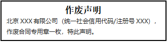 北京XXX有限公司(統(tǒng)一社會信用代碼/注冊號XXX),作廢合同專用章一枚,特此聲明。
