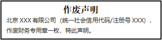 北京XXX有限公司(統(tǒng)一社會信用代碼/注冊號XXX),作廢財務(wù)專用章一枚,特此聲明。
