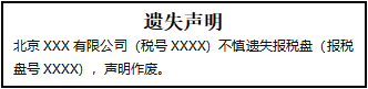 北京XXX有限公司(稅號(hào)XXXX)不慎遺失報(bào)稅盤(報(bào)稅盤號(hào)XXXX),聲明作廢。